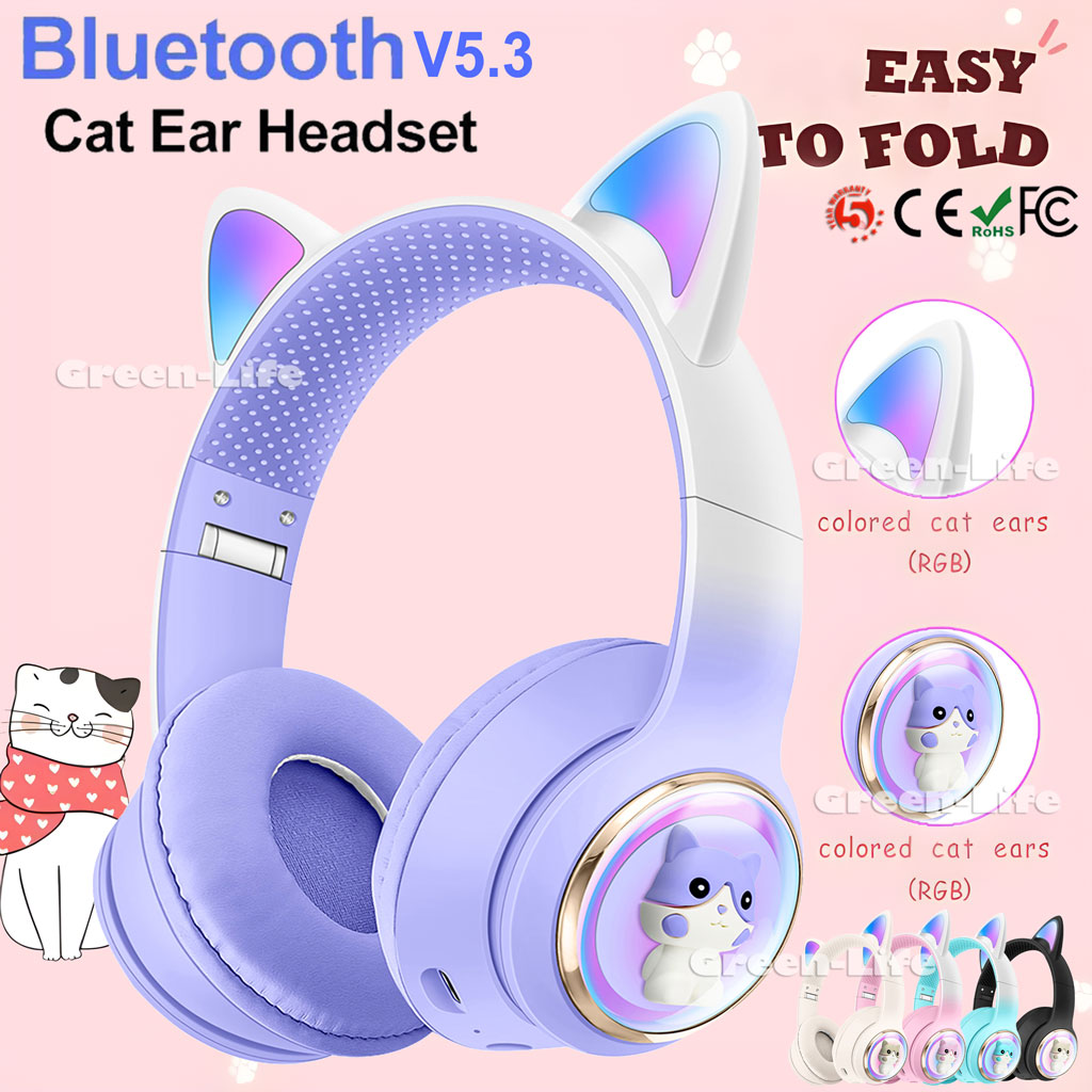 ♪ Cute cat wireless Bluetooth-compatible headset, the game can listen to songs.
