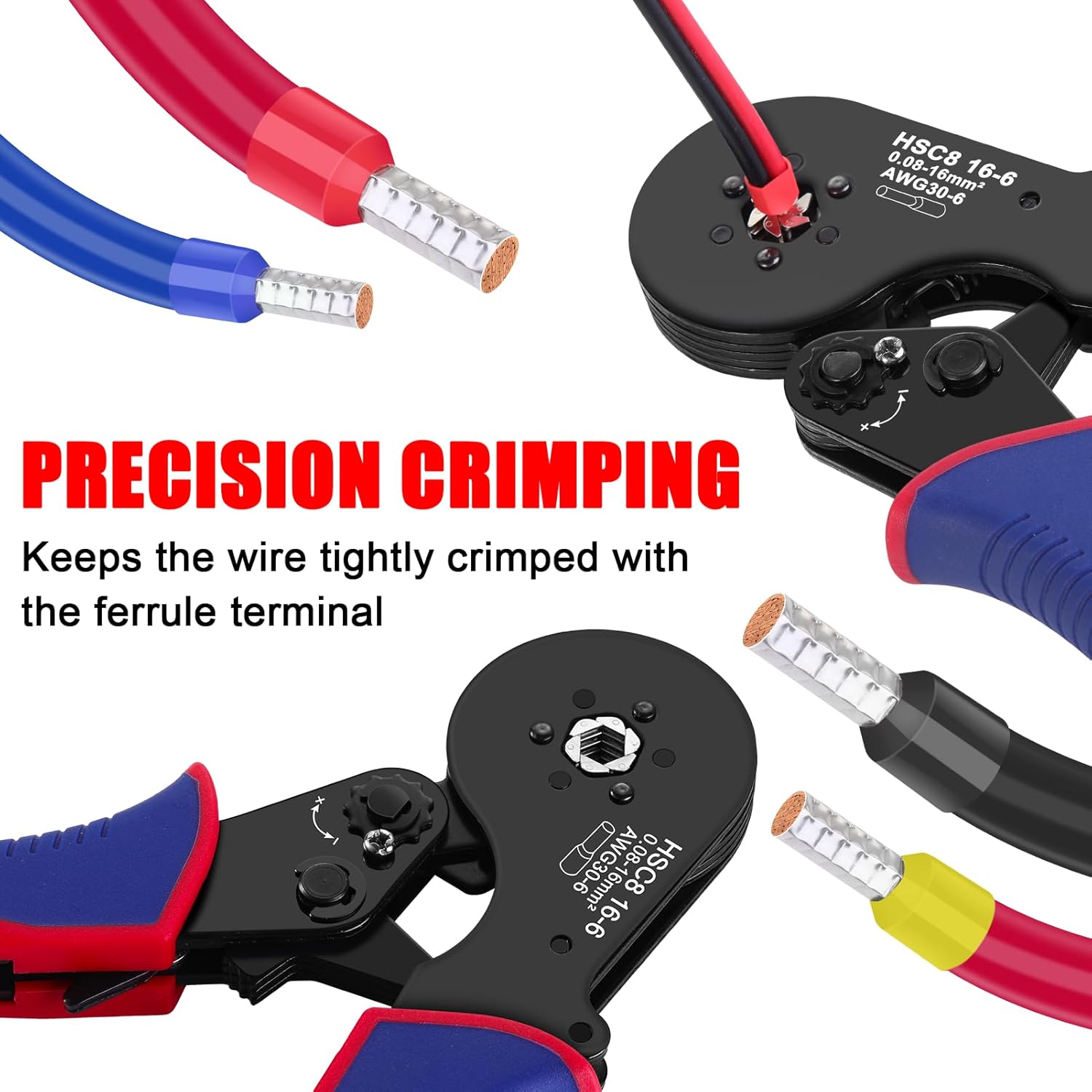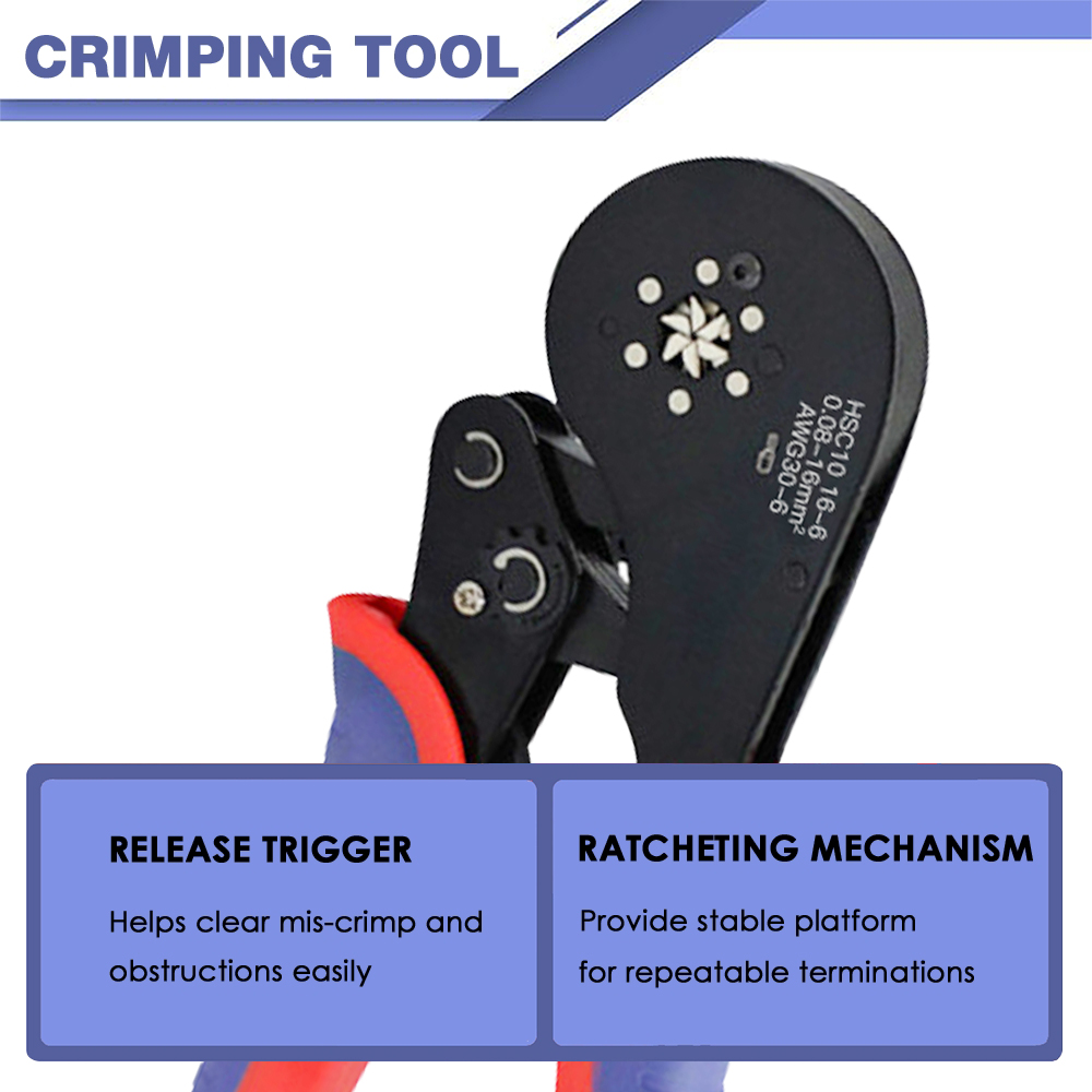 Breiter Drahtquerschnittsbereich & hochpräzise Zahnräder: Es unterstützt einen breiten Drahtquerschnittsbereich von 0,08 bis 16 mm² und eignet sich daher für verschiedene Anwendungen mit Litzen. Ausgestattet mit hochpräzisen Zahnrädern gewährleistet dieses Werkzeug gleichmäßiges und hochwertiges Crimpen bei jedem Arbeitsgang. So werden ungleichmäßiger Druck und unvollständige Verpressungen vermieden, die elektrische Verbindungen beeinträchtigen könnten.