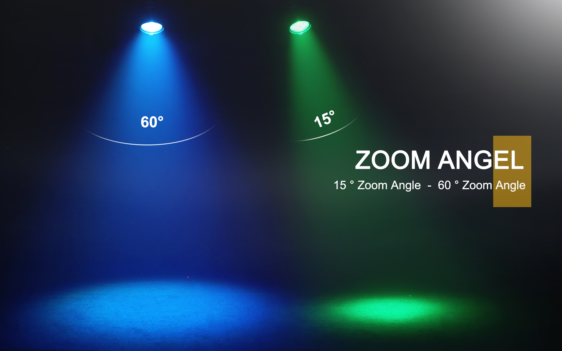 The spotlight features a versatile zoom range of 15° to 60°, making it ideal for throw distances between 5 to 20 meters,