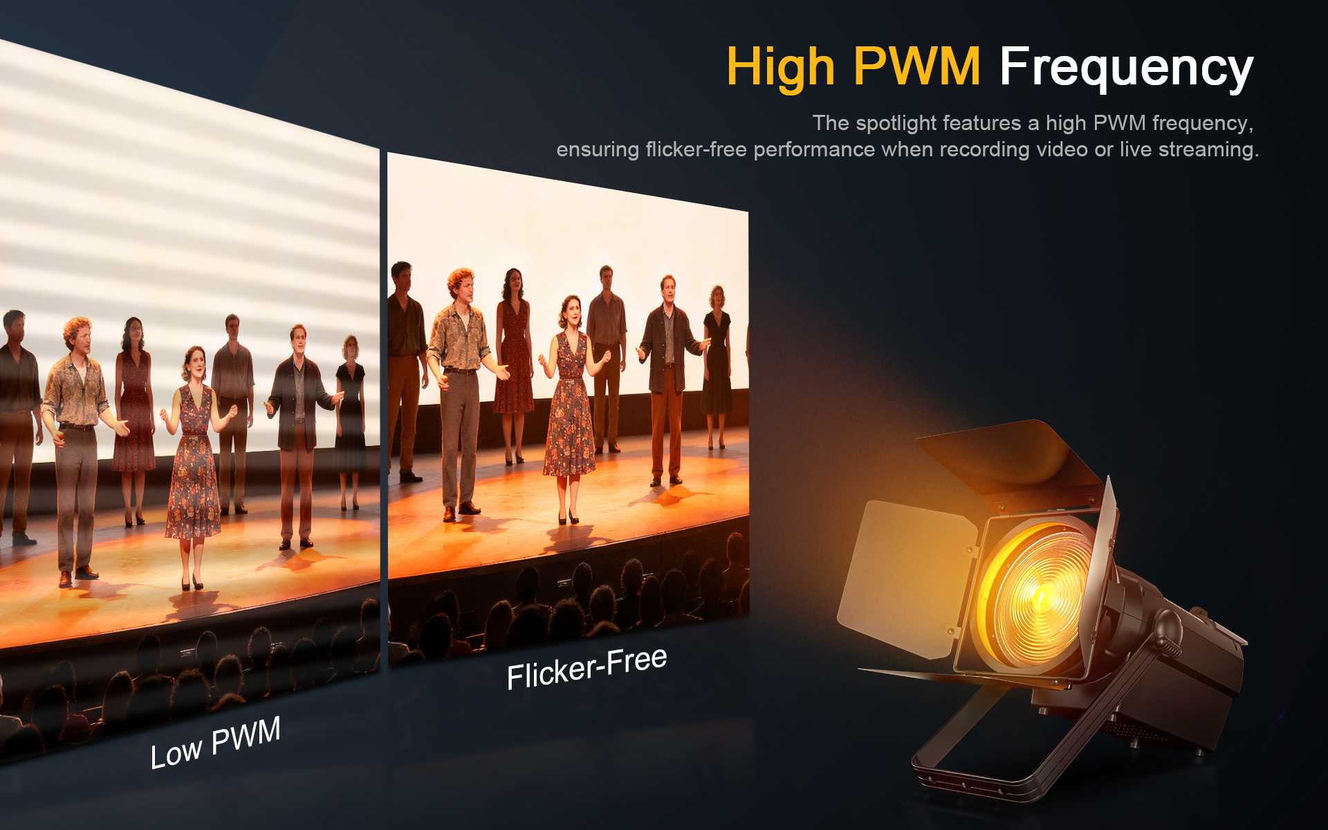 The spotlight features a high PWM frequency,