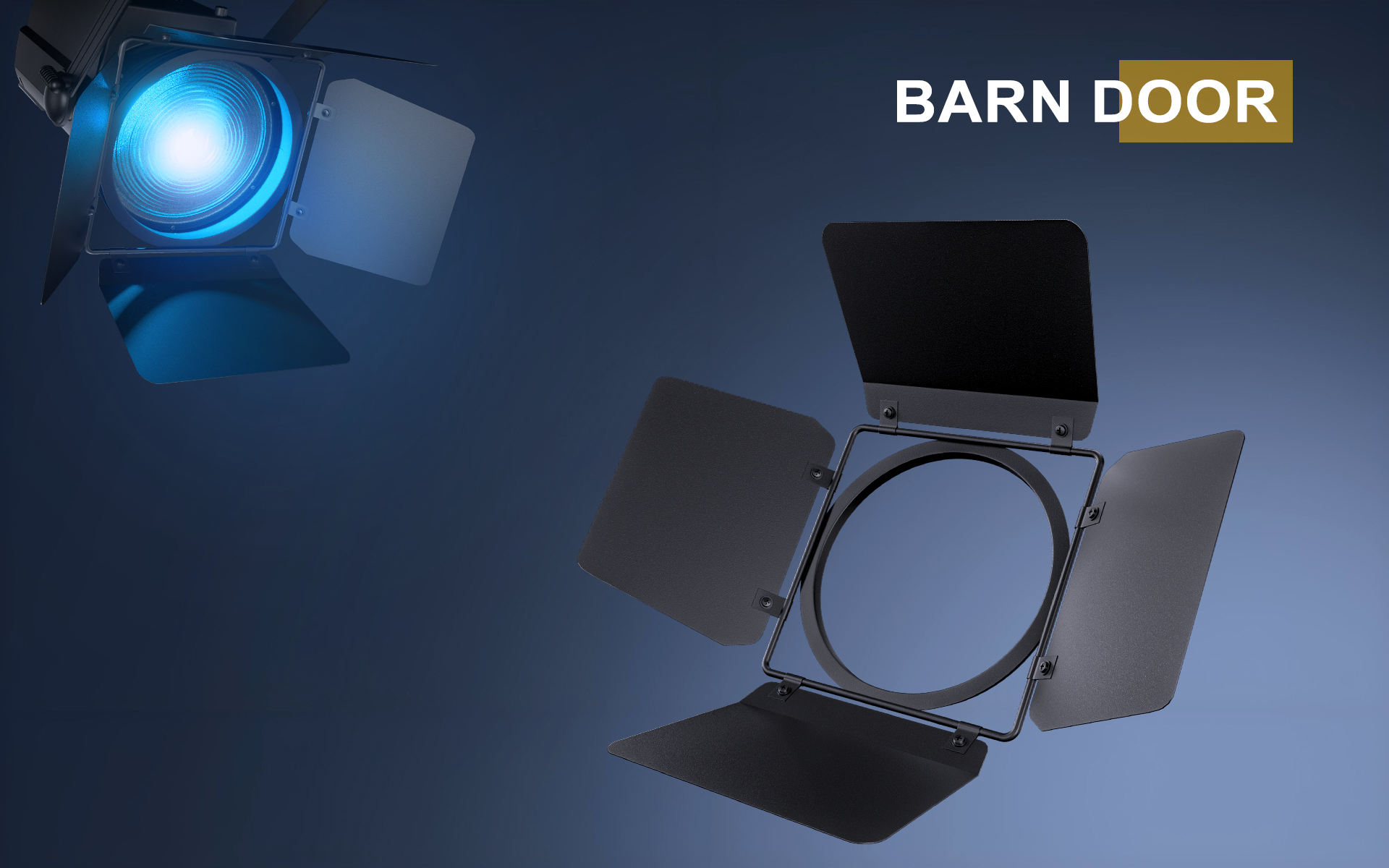 The spotlight comes with an adjustable barndoor that can be mounted in front of its head,