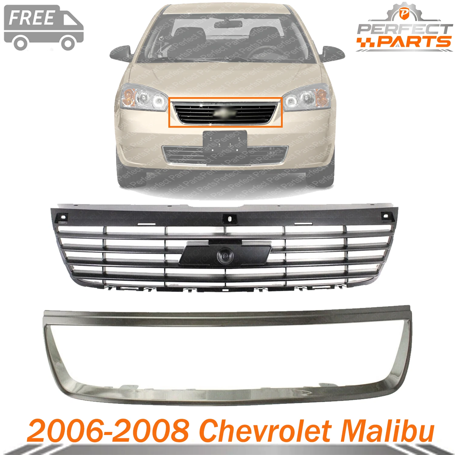 Front Bumper Upper Grille Black + Molding Chrome For 2006-2008 Chevrolet Malibu