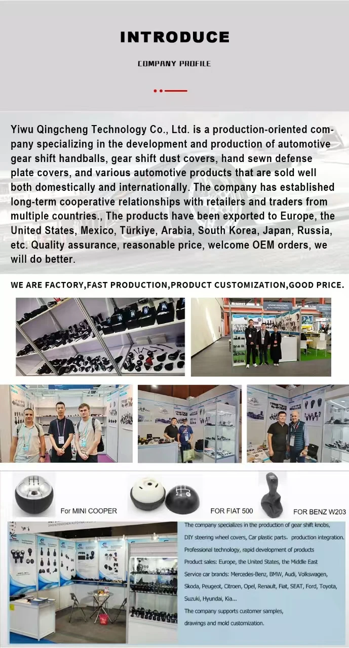 Attention: After placing an order, please send the car model and age, as well as a photo of the car's gear shift head to customer service. We will arrange shipment based on the car model! Attention Applicable vehicle models: Crystal Gear Shift Knob For 21-24:Monjaro important:If you are unsure if your car is compatible, please contact our customer service! Product Description: >>>Product Specification: 1. Use Real K9 crystal material,sparkling 2. Easy installation,direct replacement 3. Comfortable feel 3D vision 4.The original car is moulded, and the fit is high 5.The shift head of the original car is the same as the picture Notice: If you don't know if your car is suitable, you can contact us! Packaging diagram Company Introduction: Yiwu Qingcheng Technology Co., Ltd. is a production-oriented company specializing in the development and production of automotive gear shift handballs, gear shift dust covers, hand sewn defense plate covers, and various automotive products that are sold well both domestically and internationally. The company has established long-term cooperative relationships with retailers and traders from multiple countries., The products have been exported to Europe, the United States, Mexico, Türkiye, Arabia, South Korea, Japan, Russia, etc. Quality assurance, reasonable price, welcome OEM orders, we will do better.