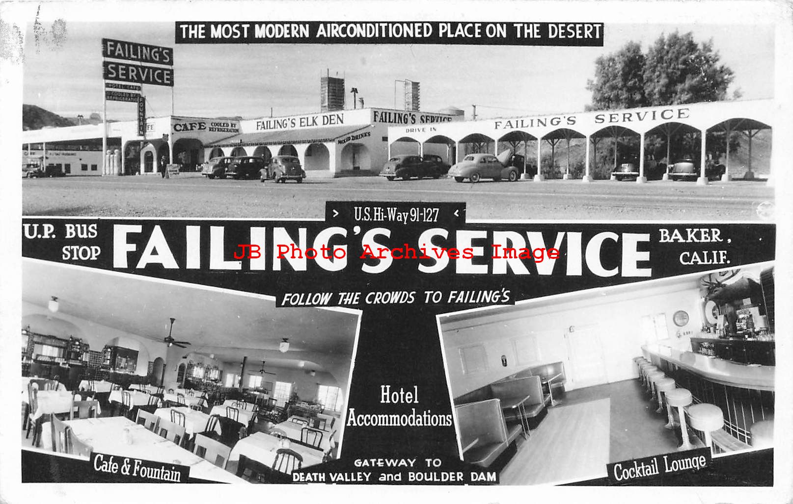 CA, Baker, California, RPPC, Failing's Service Station, Hotel, Multi-Views