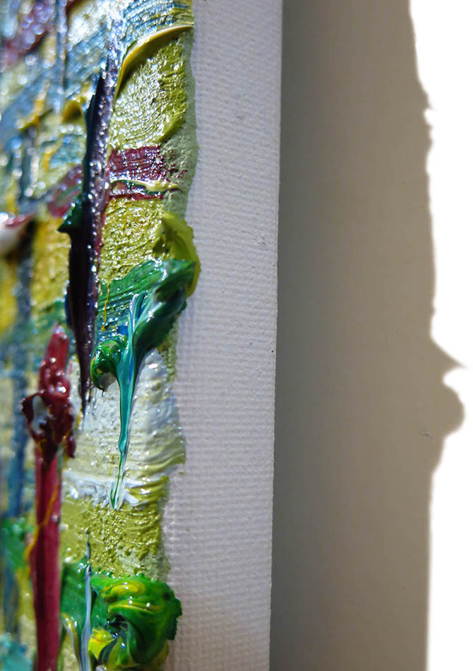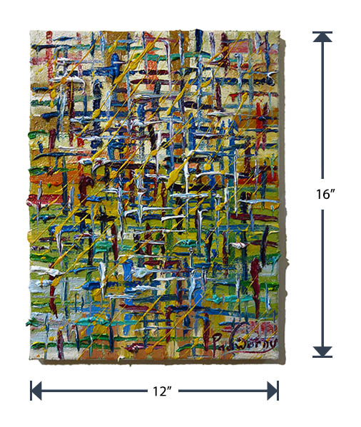 Oil Paint on canvas of 16 by 12 by 3/4 in., including hanging clip.