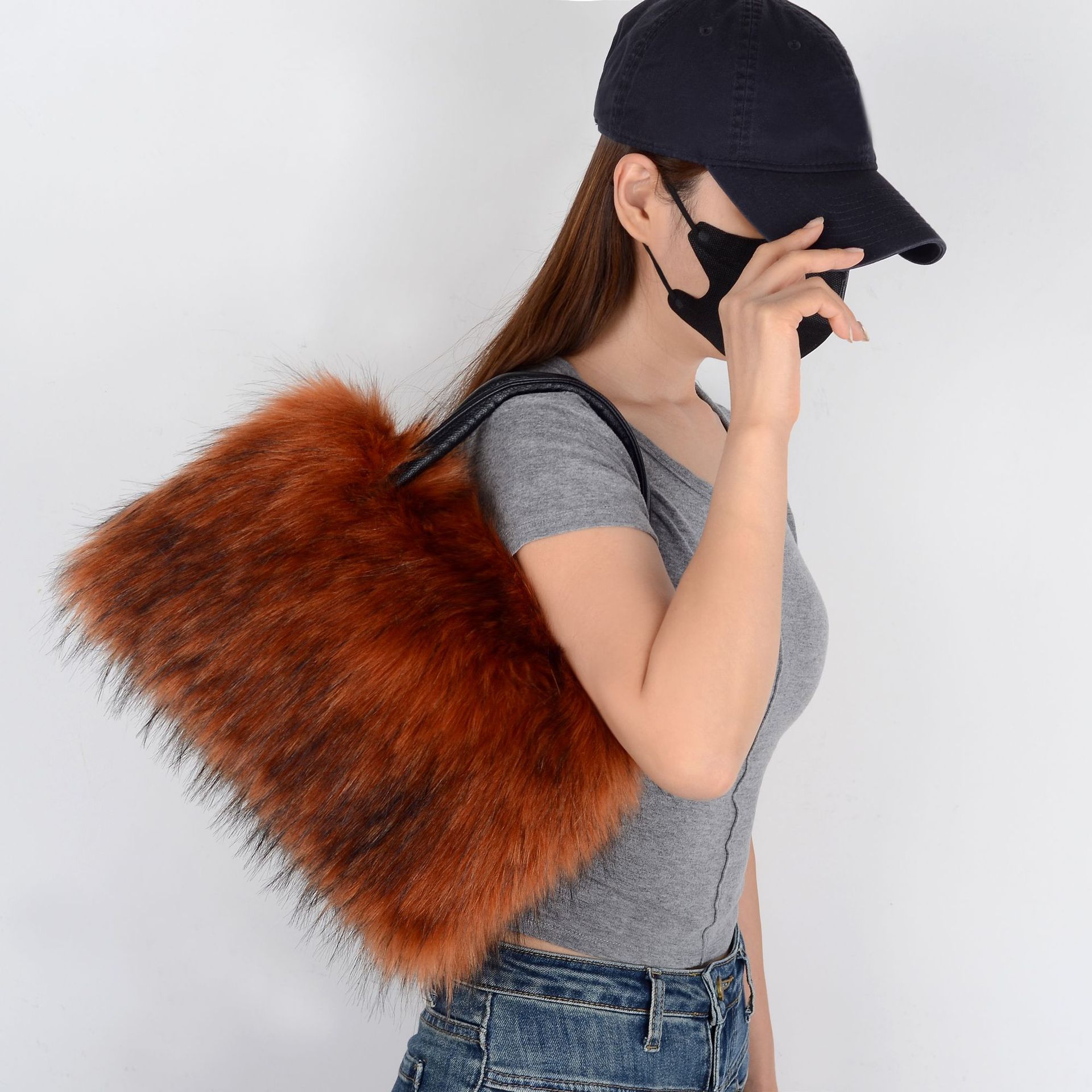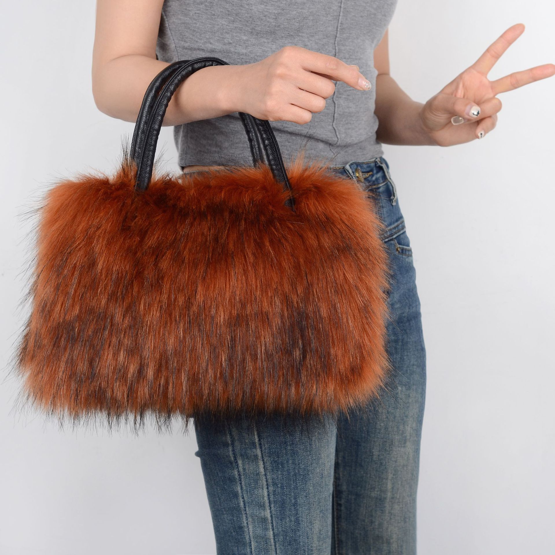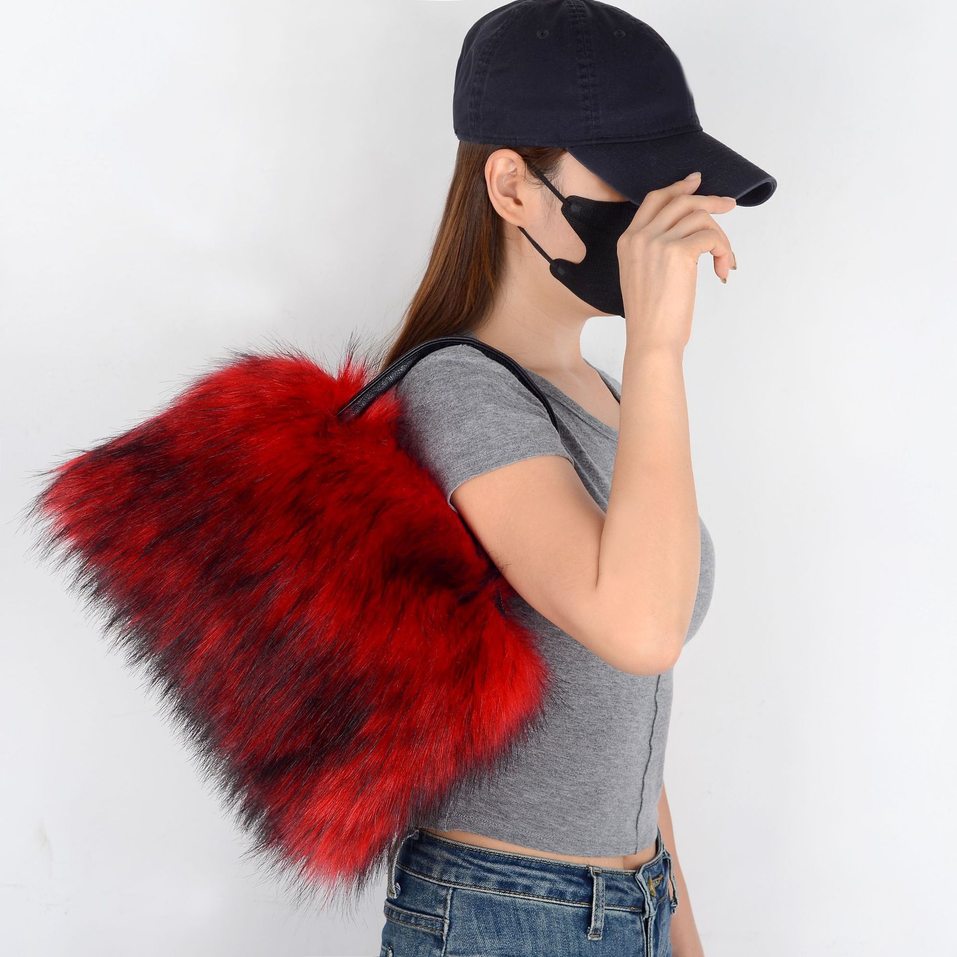 Material: Imitation fur raccoon fur bag