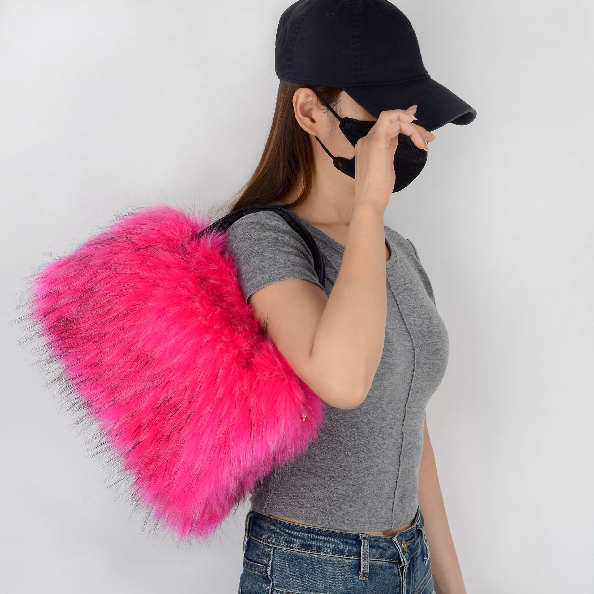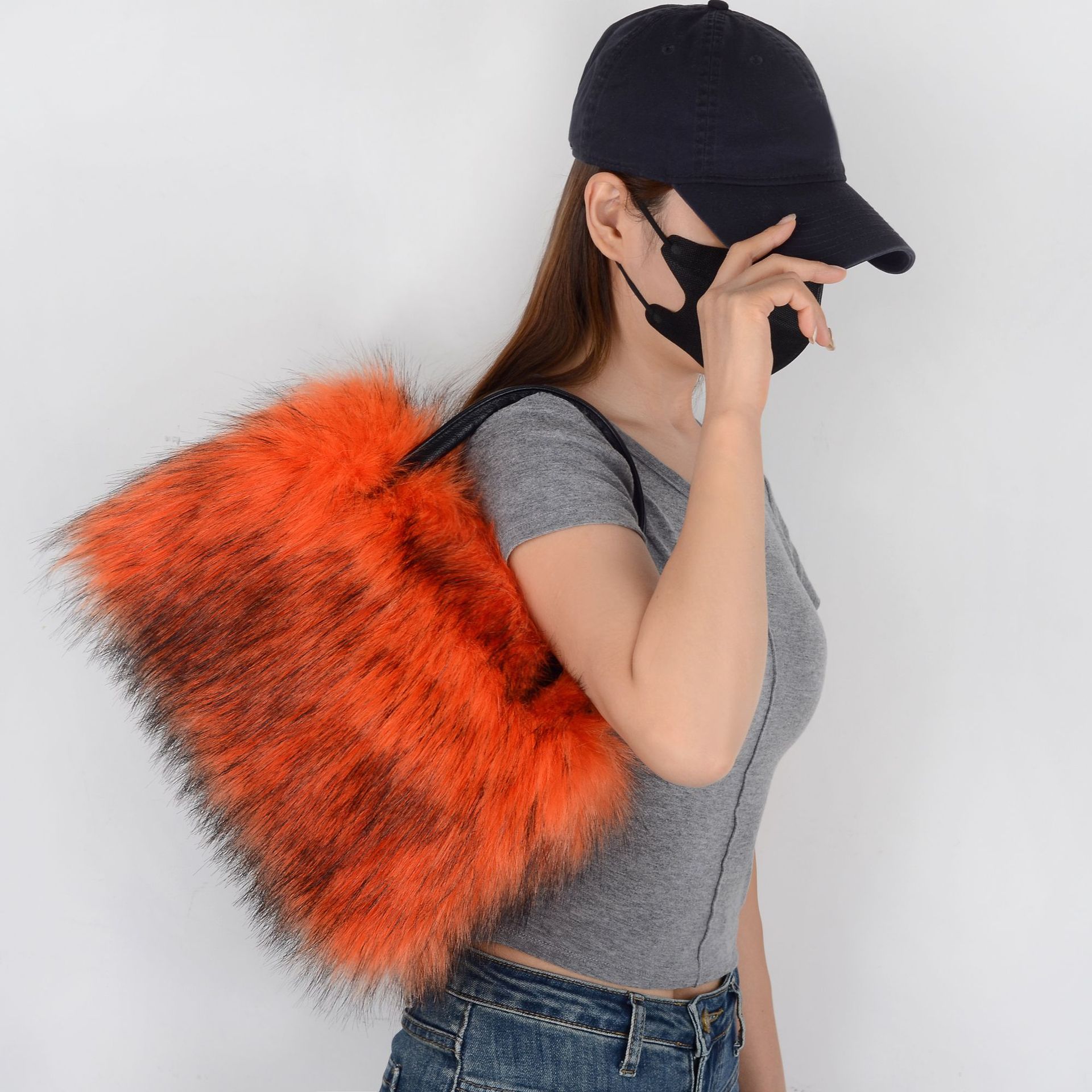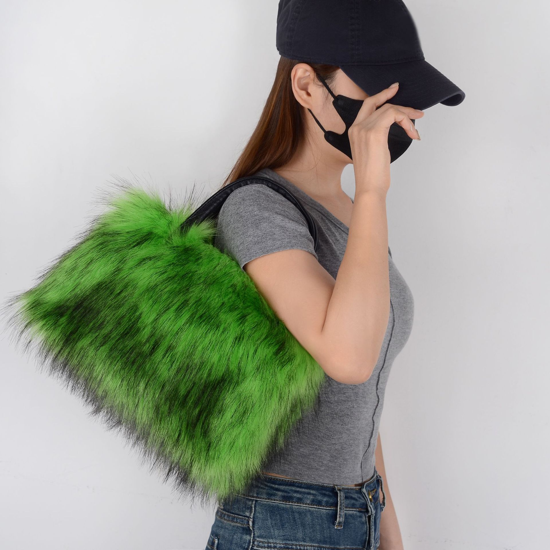Material: Imitation fur raccoon fur bag