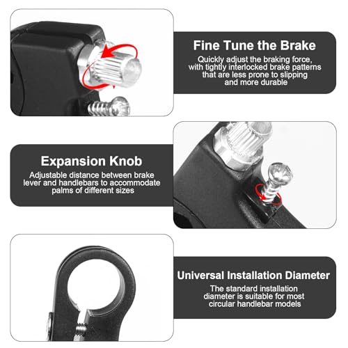 Convient à la plupart des vélos : le frein de vélo convient aux guidons d’un diamètre de 22 mm, convient à la plupart des vélos, tels que les VTT, les vélos pliants, les vélos de route ou les vélos de route, etc.