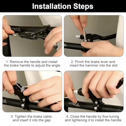 Installation facile : retirez d’abord la poignée du guidon et réglez les vis de manière à ce qu’il y ait un espace de vis et une fissure sur le levier de frein. Deuxièmement, appuyez sur le guidon pour que le marteau de frein pénètre dans le trou de câble correspondant, puis serrez-le. Troisièmement, fermez le levier, serrez les vis et installez la poignée du guidon.