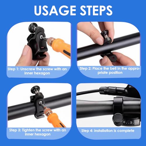 Installation Facile et Rapide: La sonnette peut être installée en quelques minutes sans outils spécialisés. Retirez simplement la poignée, fixez la sonnette au guidon et remettez la poignée en place pour une fixation sécurisée et sans glissement.