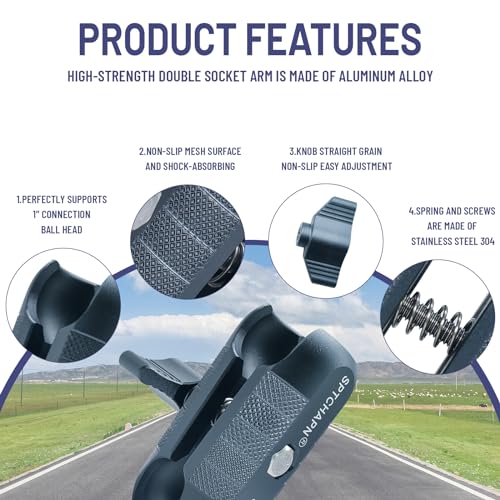 Les bras à double douille sont fabriqués en alliage d’aluminium et en acier inoxydable, ce qui les rend globalement plus durables. Ce bras à double prise peut être utilisé pour connecter deux appareils avec des supports à bille de 1″. Le bras à double prise peut être utilisé pour connecter deux appareils avec des supports à bille de 1″. Se fixe à n’importe quel composant de montage à bille de 1 pouce, la technologie à double boule et douille permet une connexion proche -Bases de montage et dispositif à réglage infini ; connexion facile, facile à régler et compatible avec le bras d’extension de montage sur bélier, support à bille de 1 pouce. Le bras à double douille a deux longueurs de 2,36″(60 mm) et 3,54″(90 mm), vous pouvez choisir différentes longueurs en fonction de vos besoins. Ils sont extrêmement polyvalents et compatibles avec les supports de téléphone, les supports de tablette, les GoPro, les voitures, les motos, les VTT, les vélos et les unités GPS, les rétroviseurs, les supports de téléphone portable, les caméras GoPro, les arceaux de sécurité et les produits à montage par boulons.