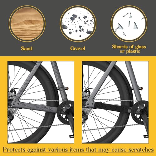 Matériau de haute qualité : le protecteur de cadre de vélo est fabriqué en silicone solide et extra élastique, doux, imperméable, antidérapant, résistant à la décoloration, résistant aux hautes températures et durable. Protège efficacement les bases de votre vélo des rayures et autres dommages causés par la chaîne heurtant le tube diagonal.