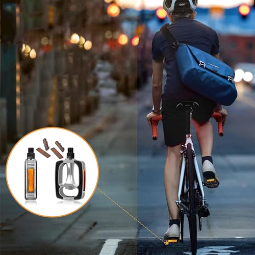 Avec 2 bandes réfléchissantes : Les pédales de vélo sont équipées de bandes réfléchissantes, qui peuvent augmenter la visibilité par temps sombre et dans l’obscurité, garantissant que les autres peuvent vous remarquer lorsque vous roulez la nuit, assurant ainsi votre sécurité.