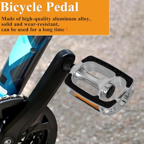 2 Pièces Pédales de Vélo VTT en Aluminium, avec Réflecteurs, Antidérapant, Pédales Plates-Formes de Vélo légères pour MTB, BMX, Vélos de Course, Argent