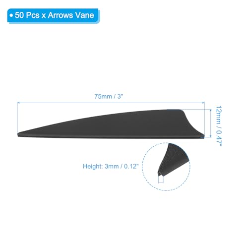 Couleur : Noir ; Longueur : 75mm / 3 pouces ; Hauteur : 3mm / 0,12 pouce ; Largeur : 12mm / 0,47 pouce ; Liste d’emballage : 50 x Plumes de flèche