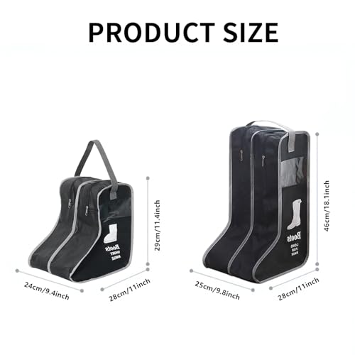 Sac à chaussures portable : Vous recevrez 2 sacs à chaussures noirs de différentes tailles. L’une convient aux bottes courtes et l’autre aux bottes longues. Il est très bien adapté pour les voyages, l’équitation et le rangement, pour une utilisation à la salle de sport