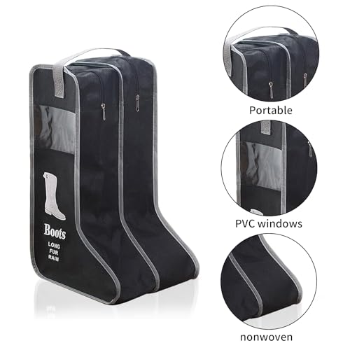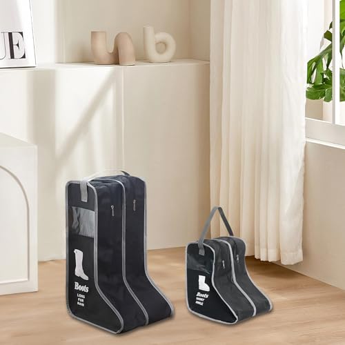 Lot de 2 Sacs à Bottes d'équitation, Portables, avec poignée, Sac à Chaussures de Voyage, avec Fermeture éclair, Sac de Rangement Anti-poussière pour Bottes Courtes et Hautes, Noir, Vent Neutre