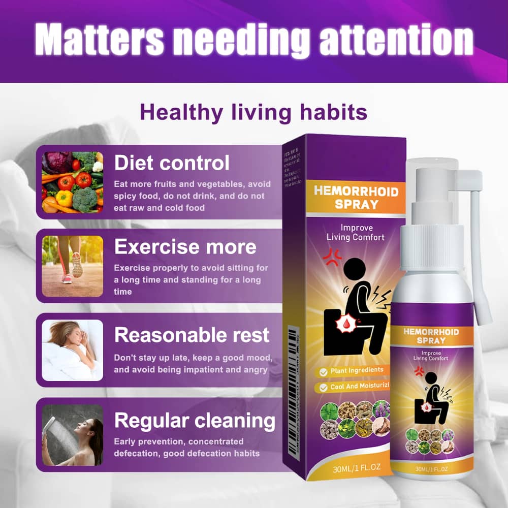 Our body spray contains 1,2-hexanediol and Poria cocos extract. It can be used to treat external hemorrhoids, fissures, and other forms of anal discomfort. Its usage is simple: 1. Clean and dry the genital area. Shake the bottle well before use. 2. Press the bottle and spray the spray from a distance of 10-15 cm from the genital area. 3. Wait a few minutes for it to absorb. The cream will penetrate and relieve pain, itching, and other discomfort.