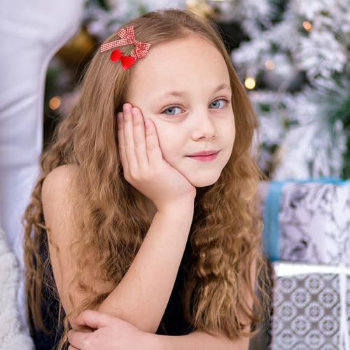 Lot de 6 barrettes à cheveux rouges en forme de nœud cerise, queue de cerise,accessoires pour femme, en velours crocodile, pour queue de cheval, décoration d'hiver de Noël
