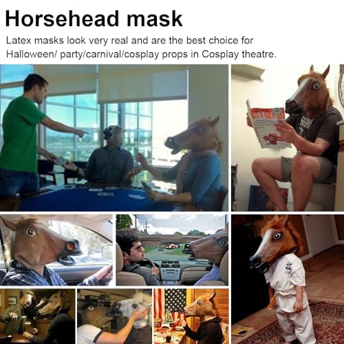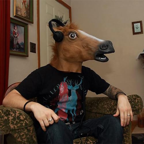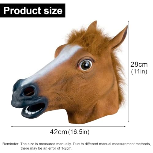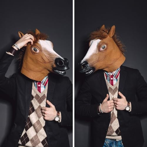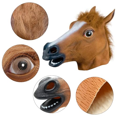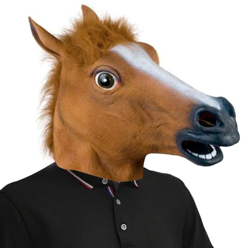 Masque de cheval - Masque d'Halloween en latex - Pour Halloween - Décoration de fête de Noël - Pour adulte - Marron