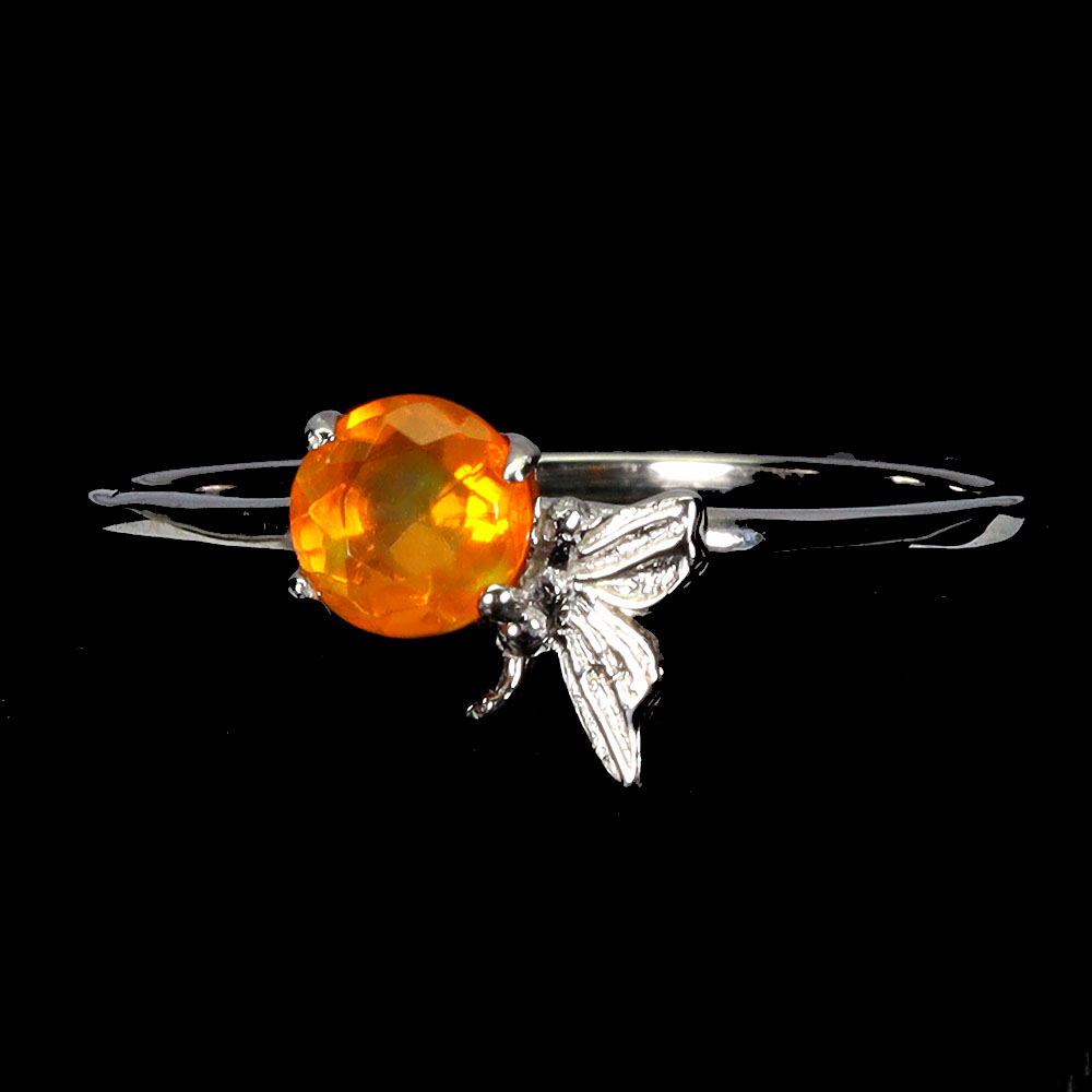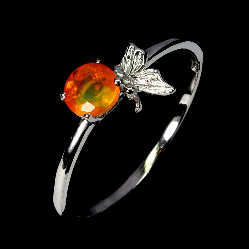 925 Sterling Silver Ring Round Orange Opal 5mm Natural Gemstone Jewelry Size 7