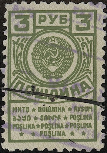 Russia, 1937. Soviet Receipt revenue, 3 Rouble green & green, Barefoot 20. Used, F-VF.