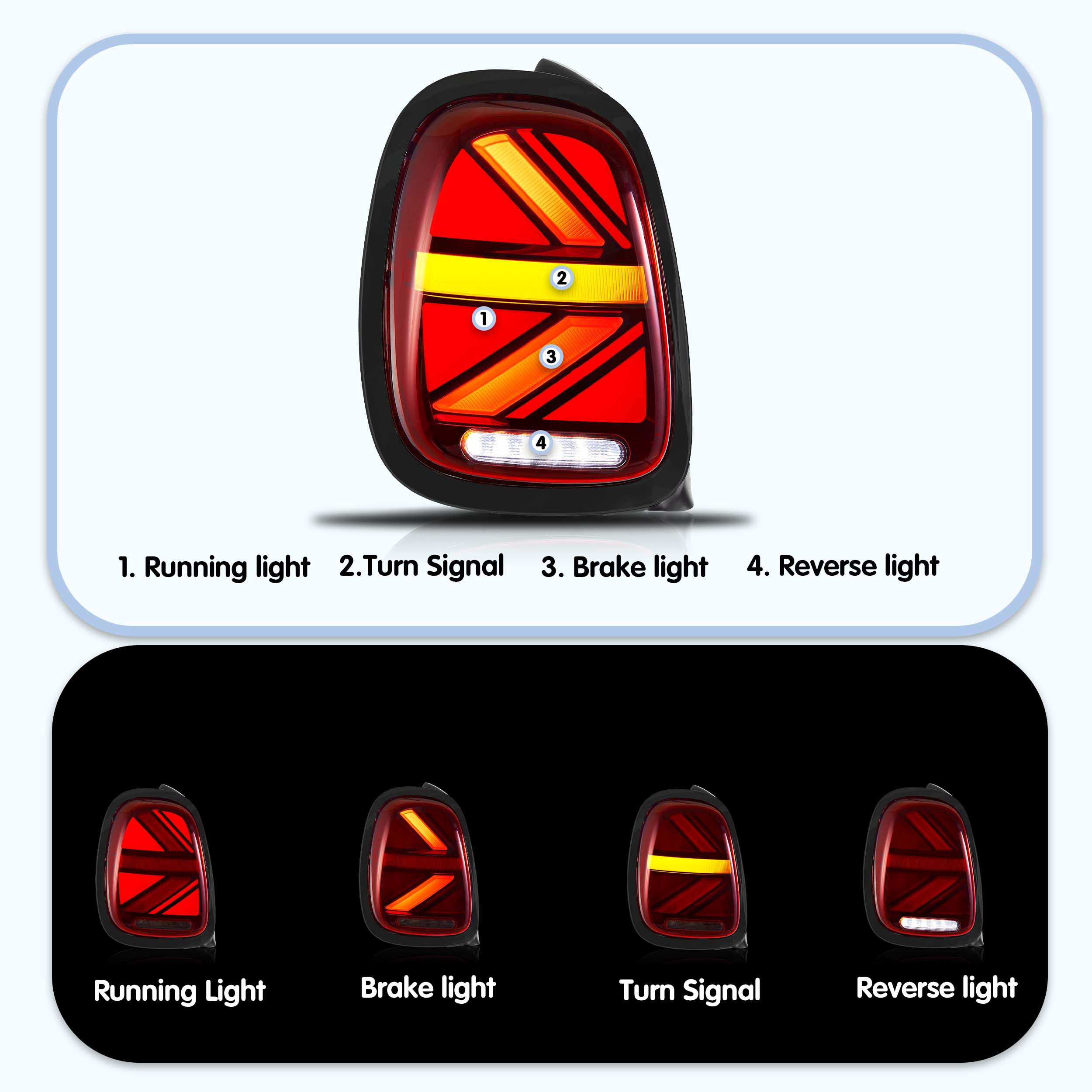 Ausführung: Rote Linse mit sequentiellem Blinker & StartâUpâAnimation