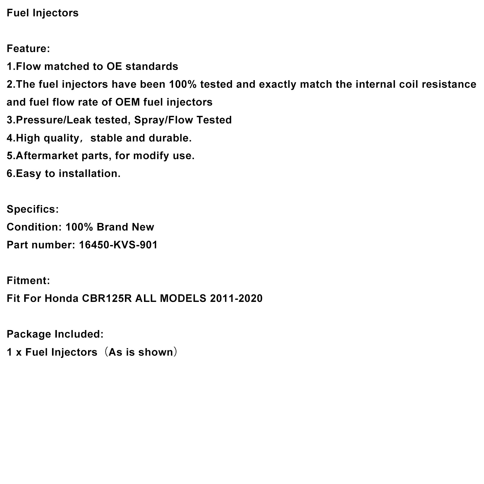2.The fuel injectors have been 100% tested and exactly match the internal coil resistance and fuel flow rate of OEM fuel injectors