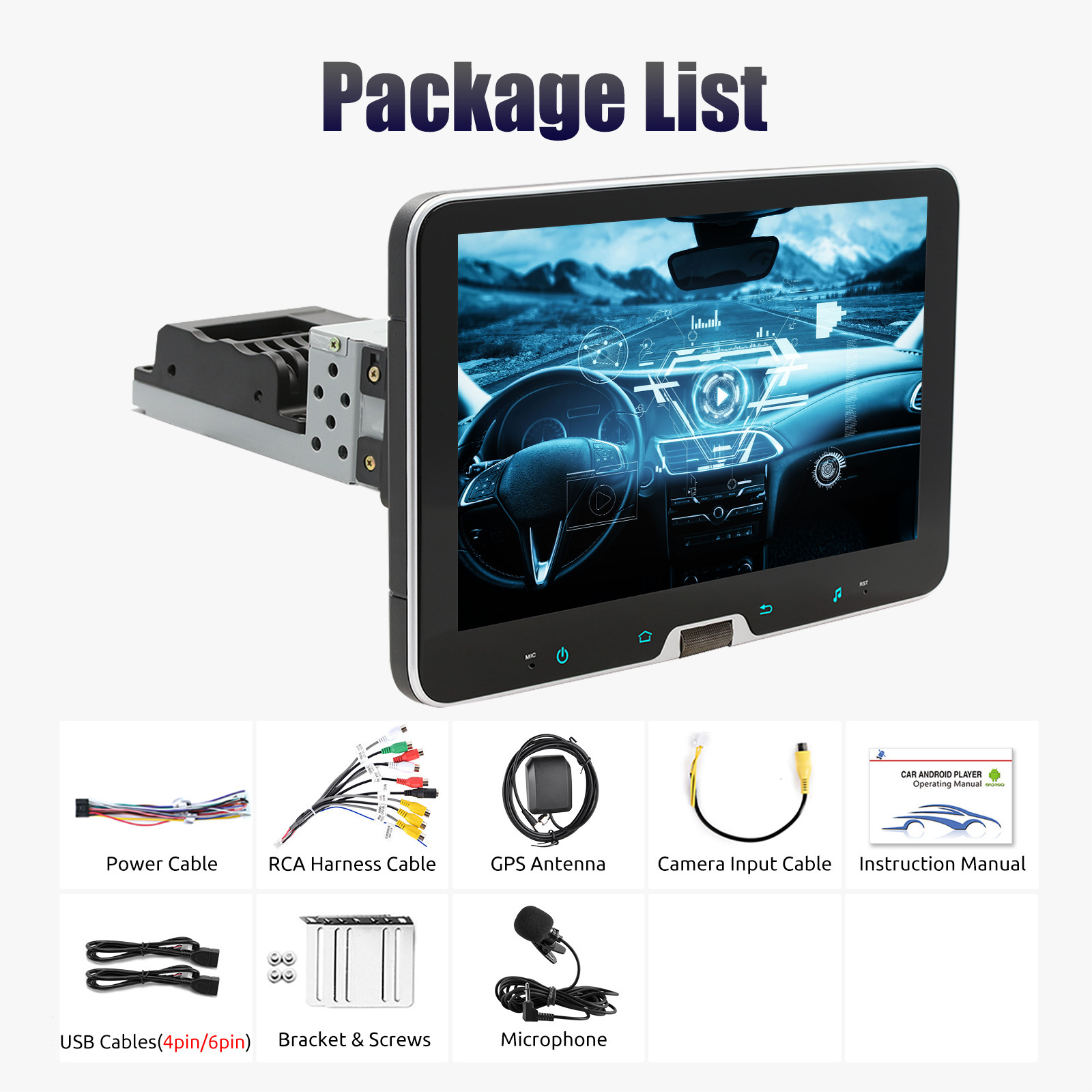 【10.1" Android Vertical Rotatable Car Stereo】This single din car stereo with high-definition 10.1 inch 2.5D tempered glass mirror touch screen,and which can be rotated by 180°.You can adjust the screen manually to make it display vertically or horizontally. Give you the most comfortable visual and touch experience.This car radio installation size is: 178(L)* 50(W)*145(D)mm.Please confirm whether the size is appropriate before buying.