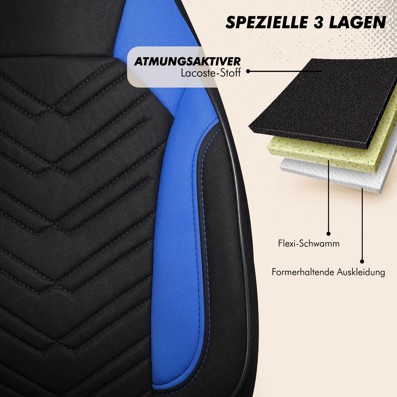 Die Autositze werden komplett bezogen. Dank Zugbänder an strategisch wichtigen Punkten haben Sie eine hohe Rutschfestigkeit.