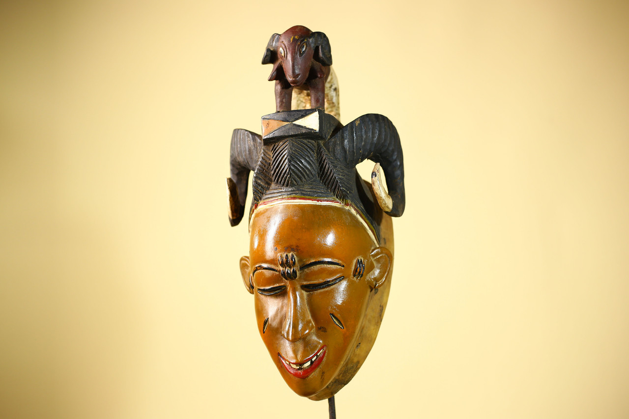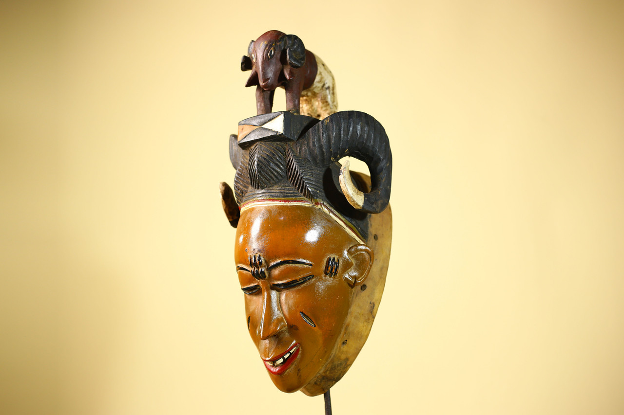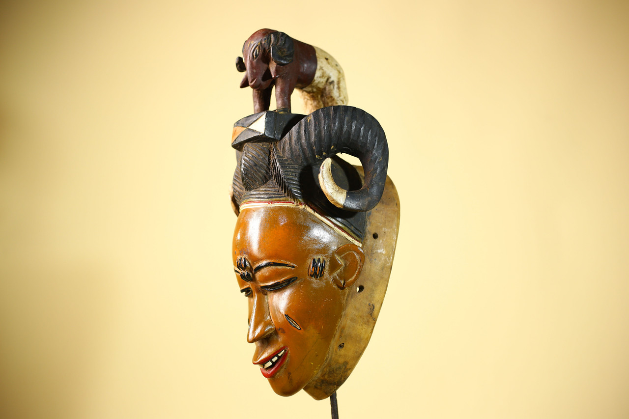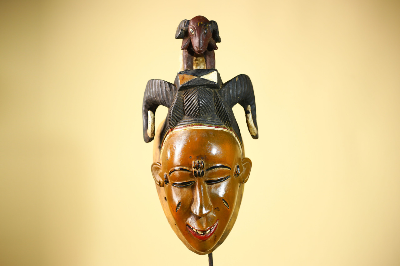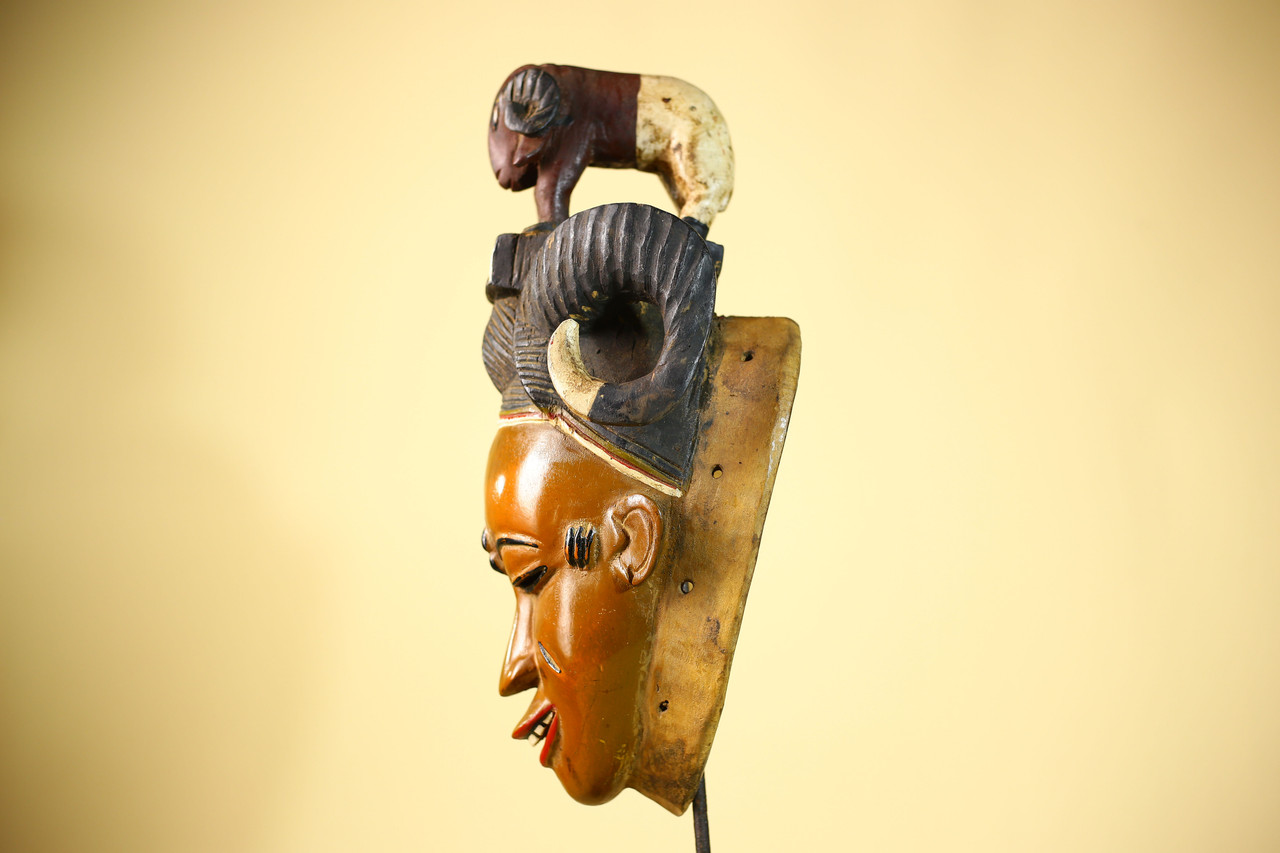 Vintage Guro Afrikanische Maske mit Widder Figur Handgeschnitzt Holz Stammeskunst - G6047Produktbeschreibung