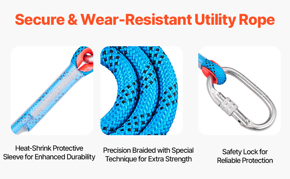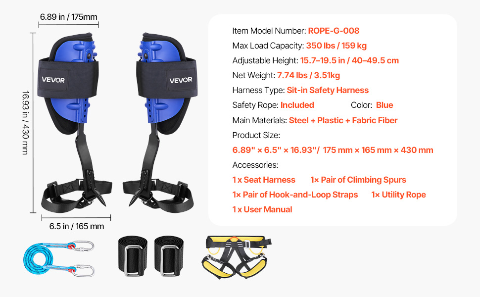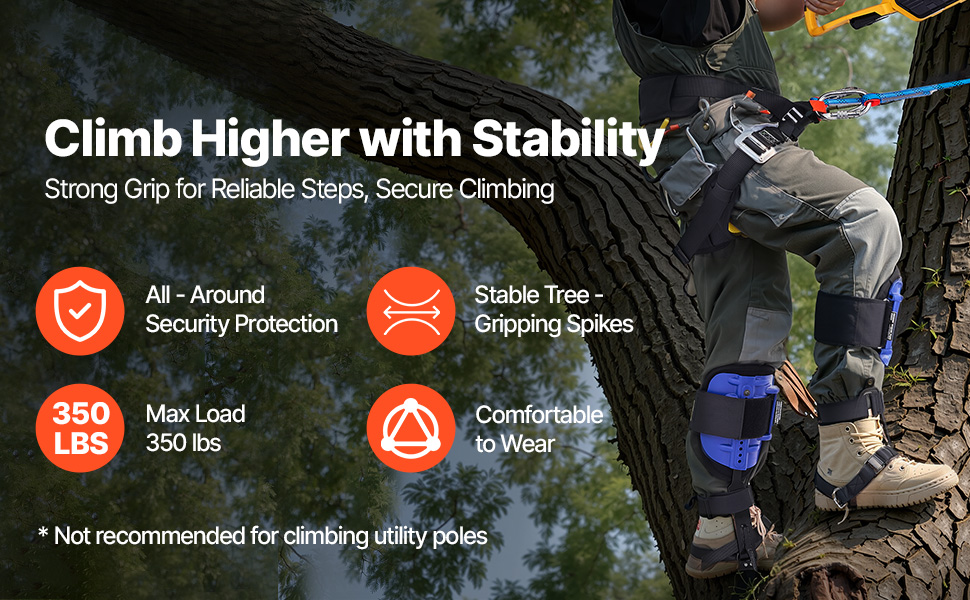 Il kit di punte da arrampicata è dotato di una corda di servizio durevole, progettata per garantire resistenza e resistenza all'usura. Offre una protezione affidabile contro le cadute e un supporto stabile, rendendo più sicuri i lavori di potatura degli alberi, raccolta della frutta.