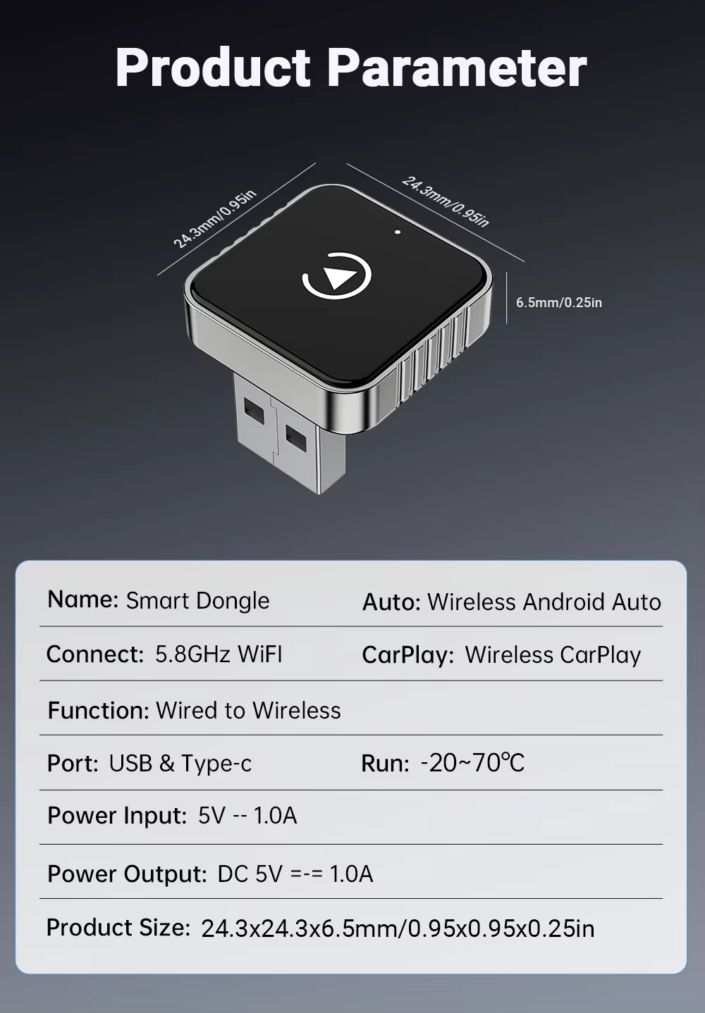 Mini CarPlay AI Box 2-in-1 Wired to Wireless CarPlay & Android Auto Adapter 5GHz