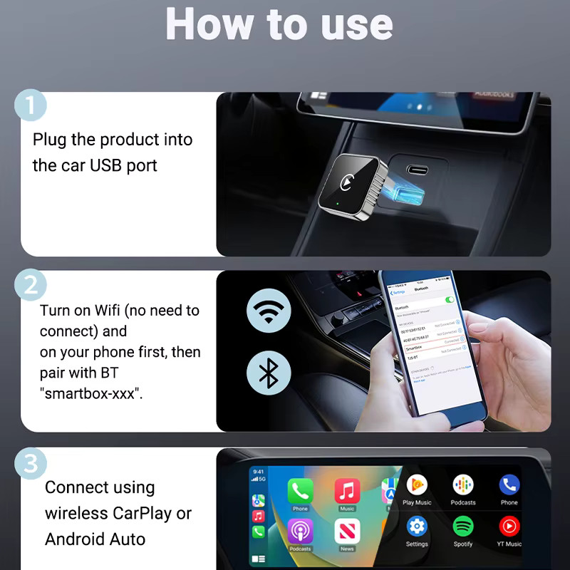 Works with original car radios that already support wired CarPlay or Android Auto.