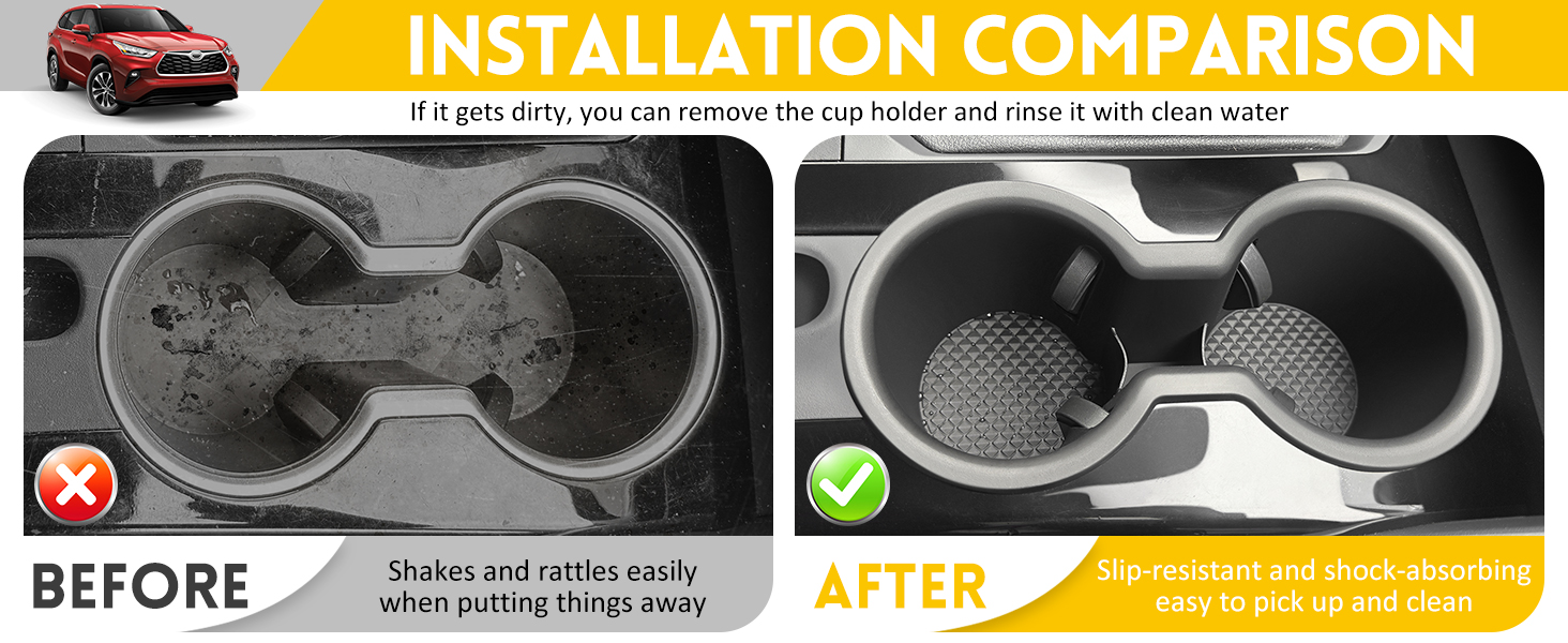 1.【Professional Customised】The Cup Holder Insert is designed exclusively only for 2020-2024 Toyota Highlander.Please confirm your car model can be used before purchase.