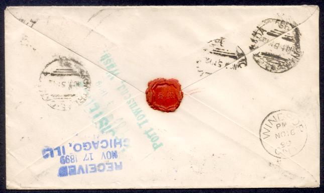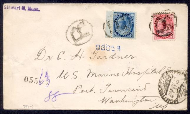CANADA 1899 QV NUMERAL COMBO REGISTERED TO USA. Front and back shown.
