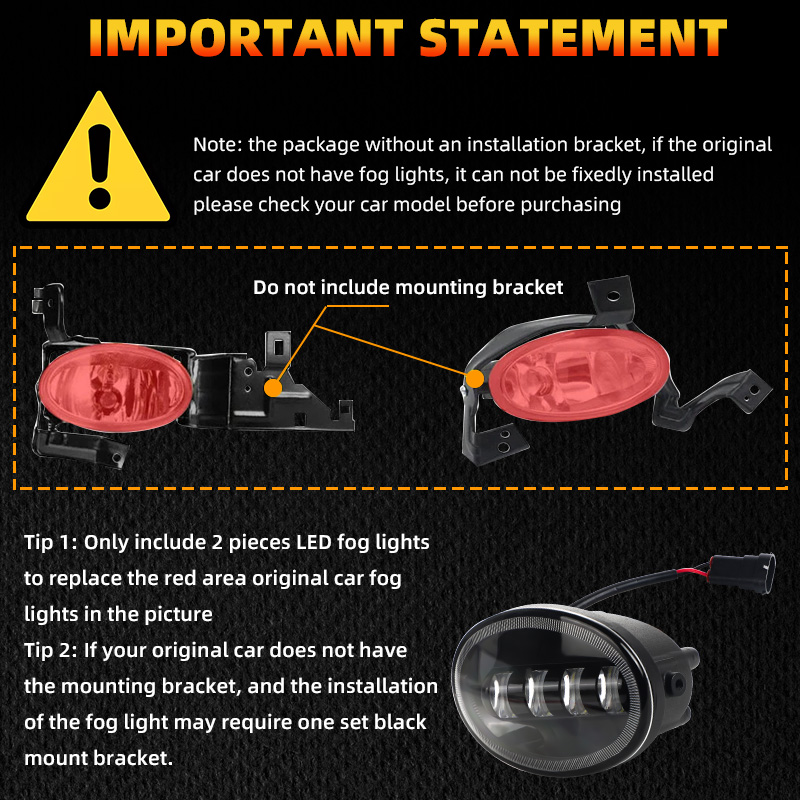 It is a modified car light, replacing the original car fog light.We combine the size of the original fog lights to provide car model/version reference.When installing, you need to fix it with the original fog lamp bracket, or you need to adjust the shape of the original fog lamp bracket.