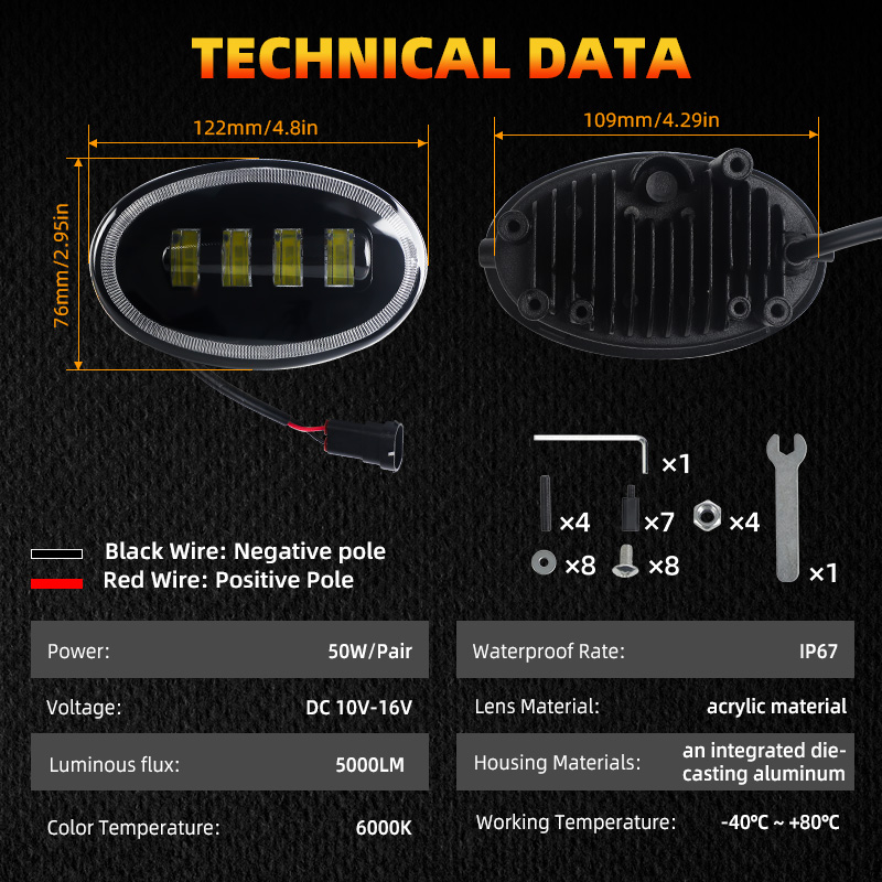 5, Fog light long lifespan: Service life over 50000 hours: Fully sealing, keep mosquitoes, water and dust out. Durable pc lens, no easy to damaged by the splashing sands and stones during driving.