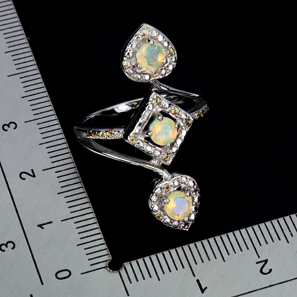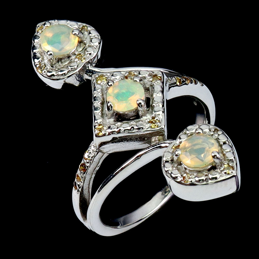 925 Sterling Silver Ring Round Fire Opal 4mm Sapphire Gemstone Jewelry Size 7
