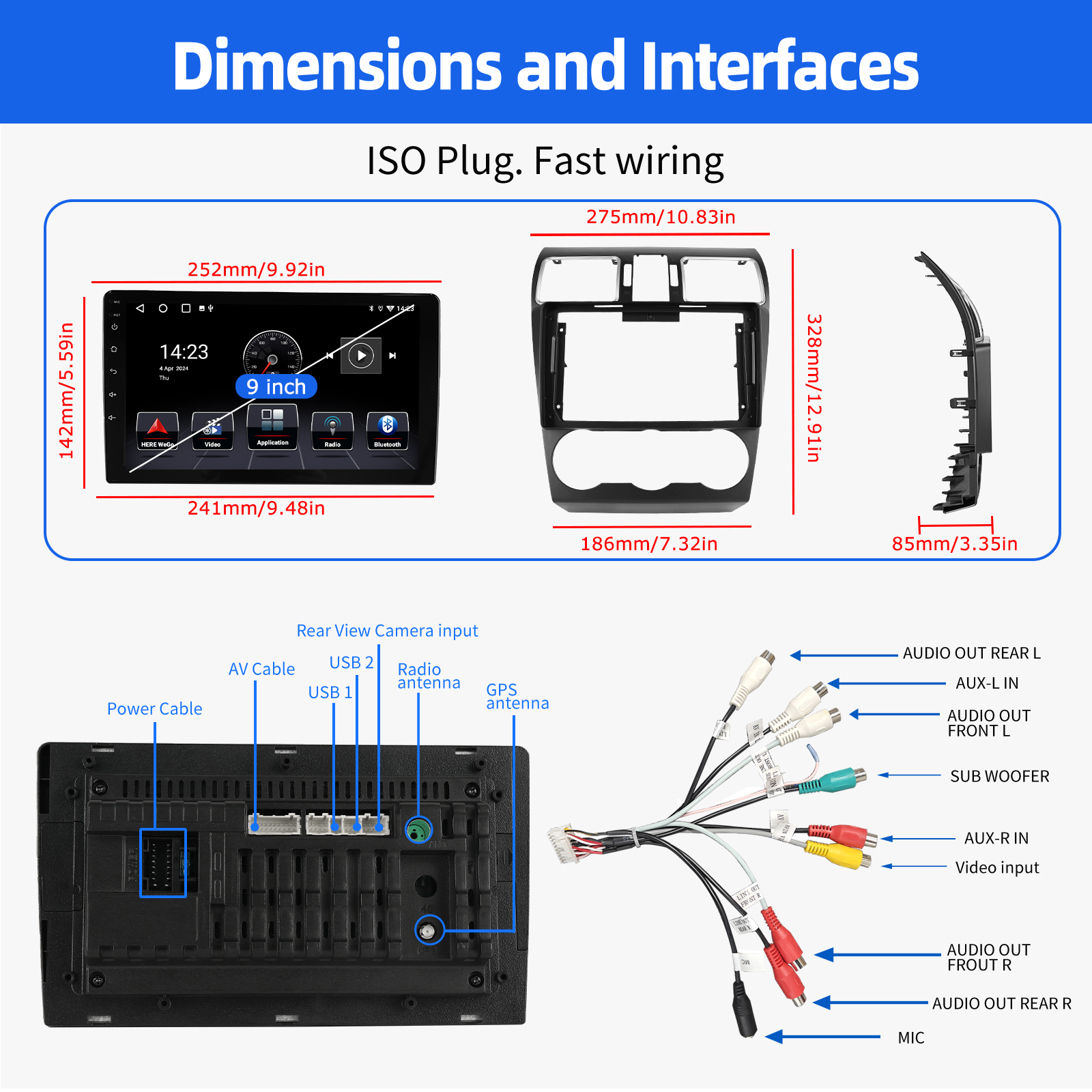 9 Inch Android 15 Car Radio For Su-baru Fores-ter XV/WRX 2015 2016 2017 2018: The Android car radio with 9" 1280* 720 HD capacitive touchscreen, 4GB RAM and 64GB ROM allows you to download your favorite apps and videos, so driving is no longer boring. No extra frame, no cable change, plug and play.