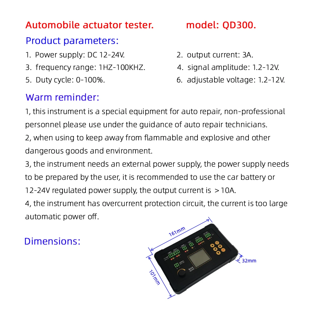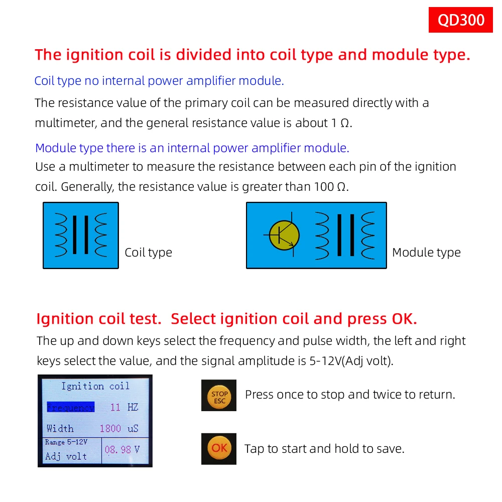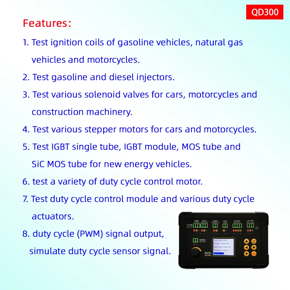 New QD300 Automobile Ignition Coil Tester Fuel Injector Idle Stepper Motor Solenoid Valve PWM IGBT Actuator Fault Detector