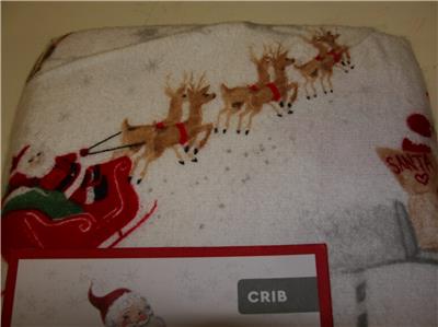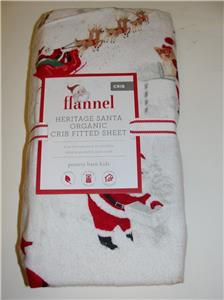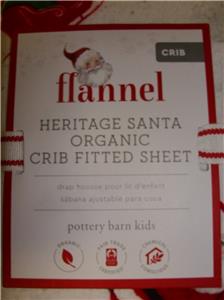 For sale is a Pottery Barn Kids flannel heritage Santa organic crib fitted sheet.