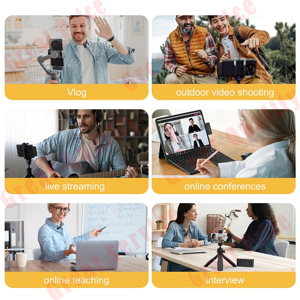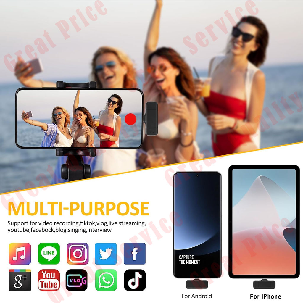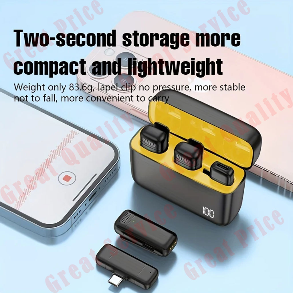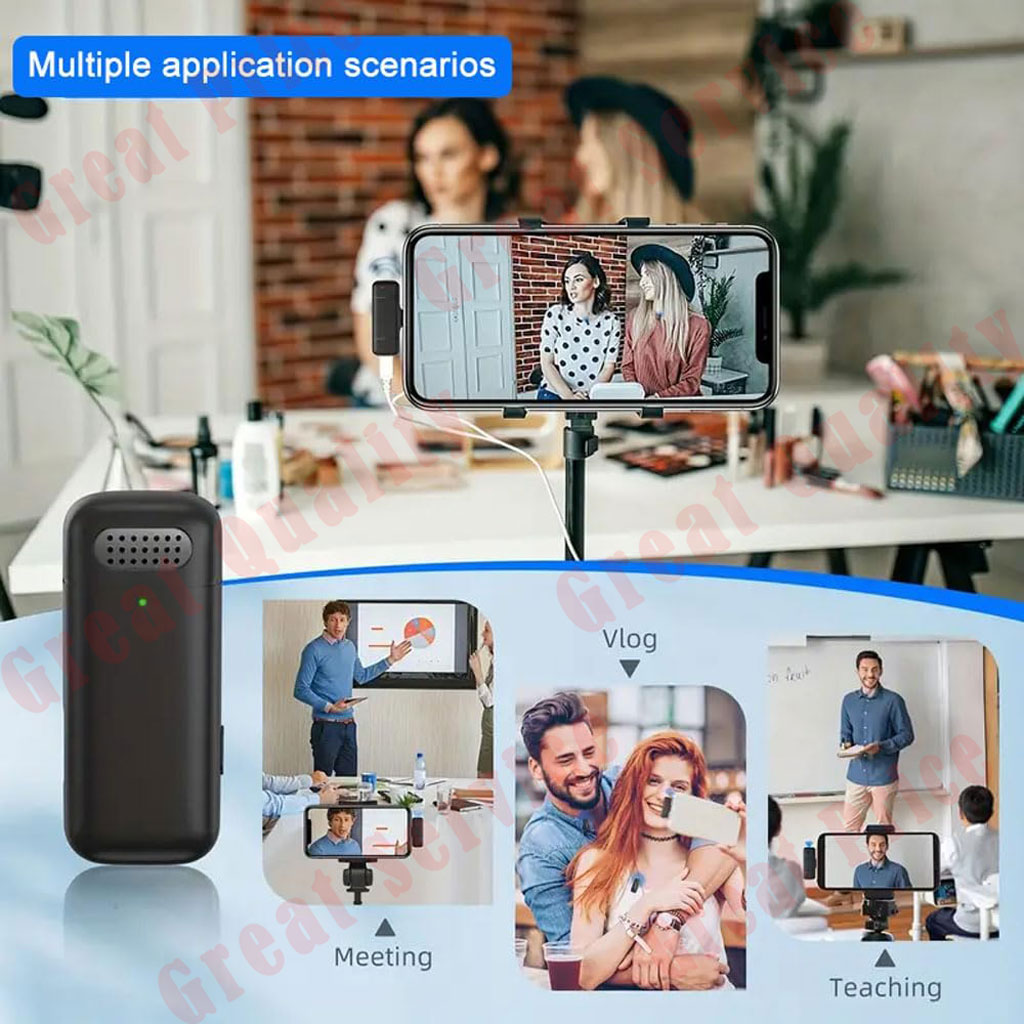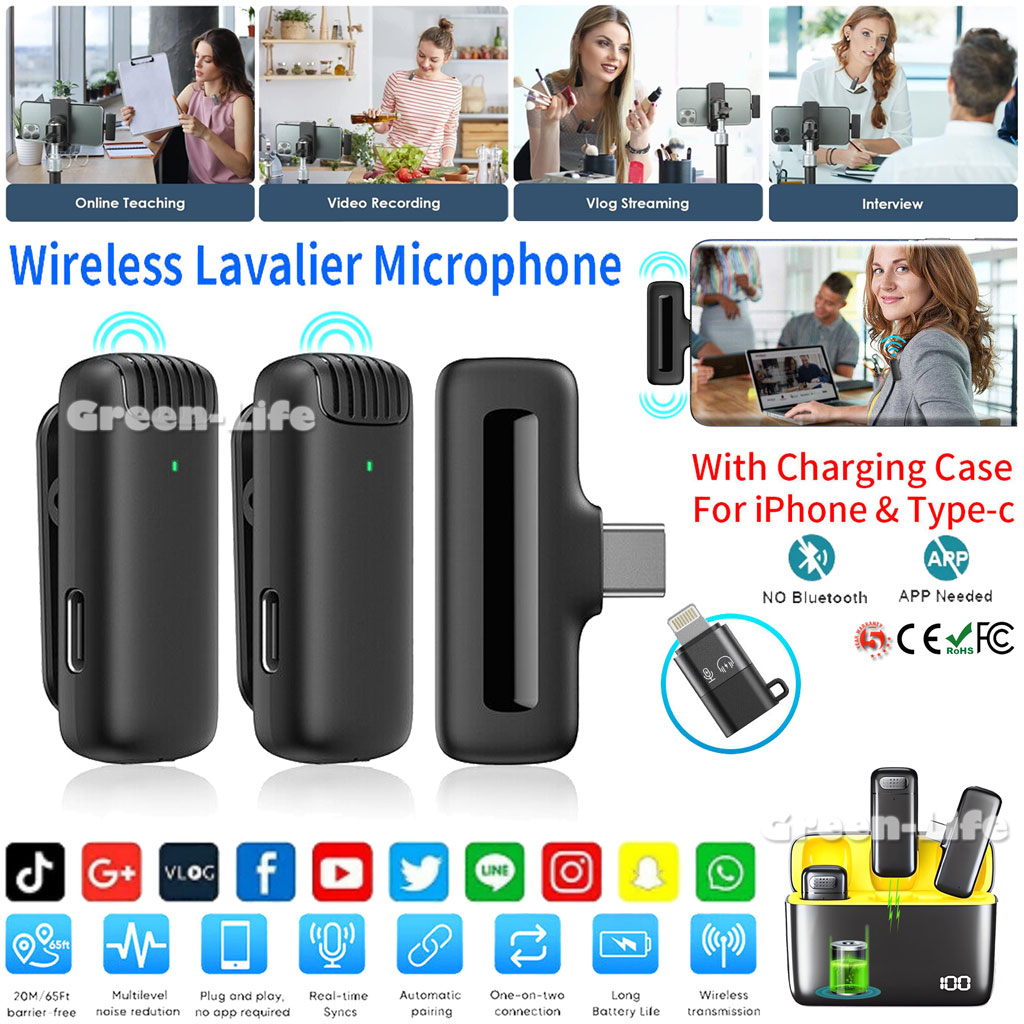 【Smart Wireless System 2.4G Technology】These wireless smart microphone adopt 2.4GHz wireless technology,that allows you no longer to be restricted to the length of the wire while recording. You can just clip the microphone on your shirt to free your hand and recording at a remote distance. Without messy wire, it will be very convenient for you to record on different social media platforms like Youtube, Tiktok and Facebook etc.
