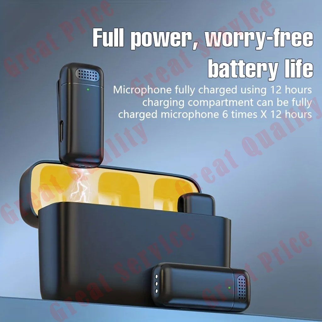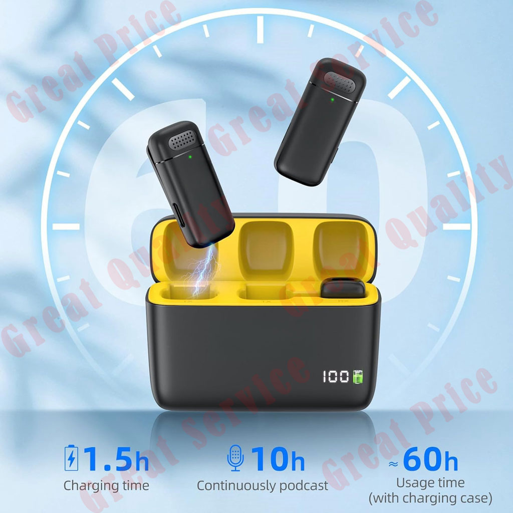 【Portable &Long-lasting Charging Case】Built in rechargeable batteries, the storage case is also where the microphone is charged. After the storage box is fully charged, the microphone can be fully charged up to 4-5 times, and the microphone can continue to work for about 4-6 hours per charge. Easy to store, when you're not using them, you can put them in a school bag, handbag or pocket.The wireless design saves you from worrying about messy cables.