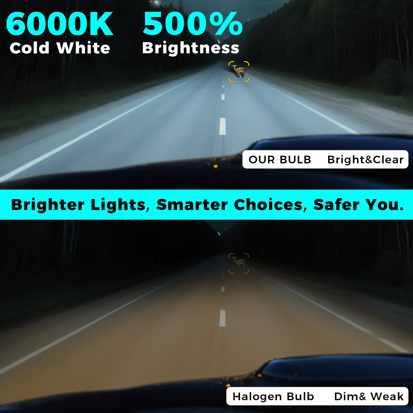 Super Bright: 100W, 72000LM, 6500K, Customized LED chips, 500% brighter as original halogen bulbs.Don't be fooled by high lumen ratings.