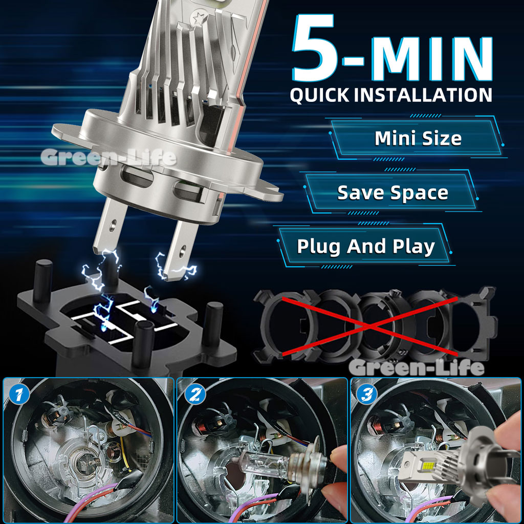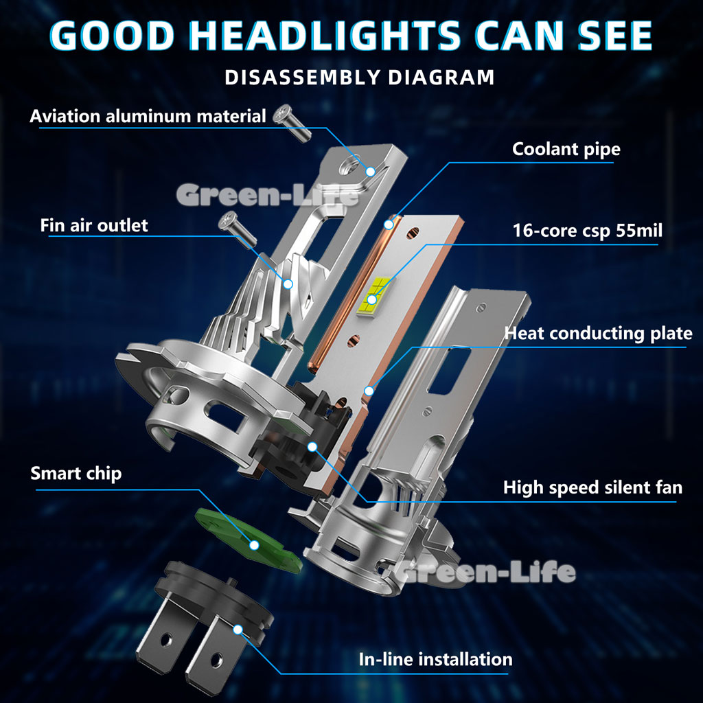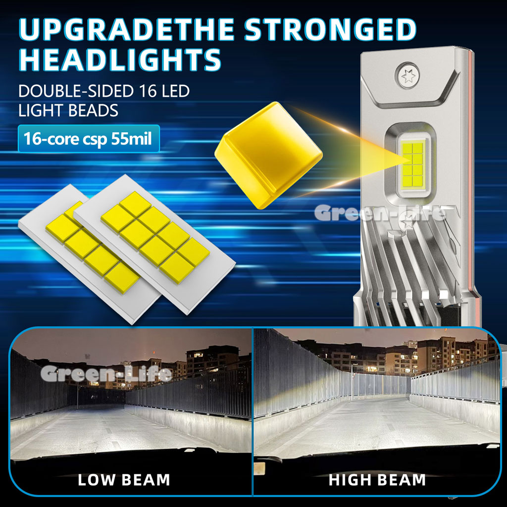 Super bright illumination: Equipped with 16Pcs CSP Chips, this H7 LED headlight produces a staggering 50000 Lumens, ensuring exceptional brightness and visibility while driving.