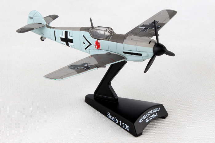 This is a Daron Worldwide Trading 5336-5 1:87 BF109 Adolf Galland. The Messerschmitt Bf 109 is a single-seat fighter aircraft that was the backbone of the Luftwaffe's fighter force during World War II. The postage stamp die-cast metal, historical airplanes include aircraft from WWI to present. They are fully decorated with authentic details and come with a display stand. Wingspans are from 4 1/2 to 8.