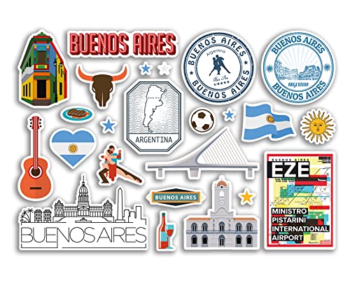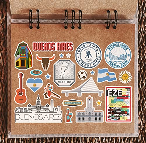 Feuille d'autocollants A5 en vinyle Buenos Aires – Monuments de l'Argentine – Timbre de vacances, carte d'été, drapeau de voyage, ville, bagages, scrapbooking #79035
