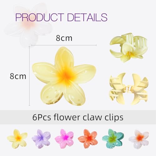 Lot de 6 pinces à cheveux en forme de fleur pour femme ,8cm, Multicolores Antidérapantes, Bonne Tenue pour Cheveux Epais/Fins/Bouclés, Accessoires Chevelure Femme pour Vacances Estivales