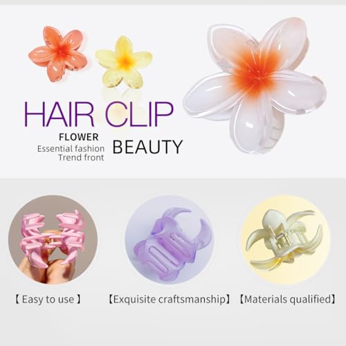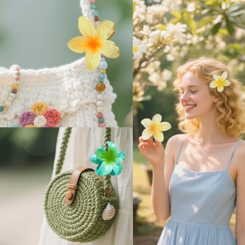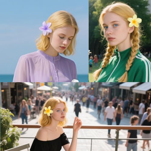 Set de 6 Pinces à Cheveux Plumeria (8cm):Diamètre 8cm, 6 couleurs (rose/blanc/jaune/lilas/bleu/vert), motif 3D Plumeria, style tendance ado.